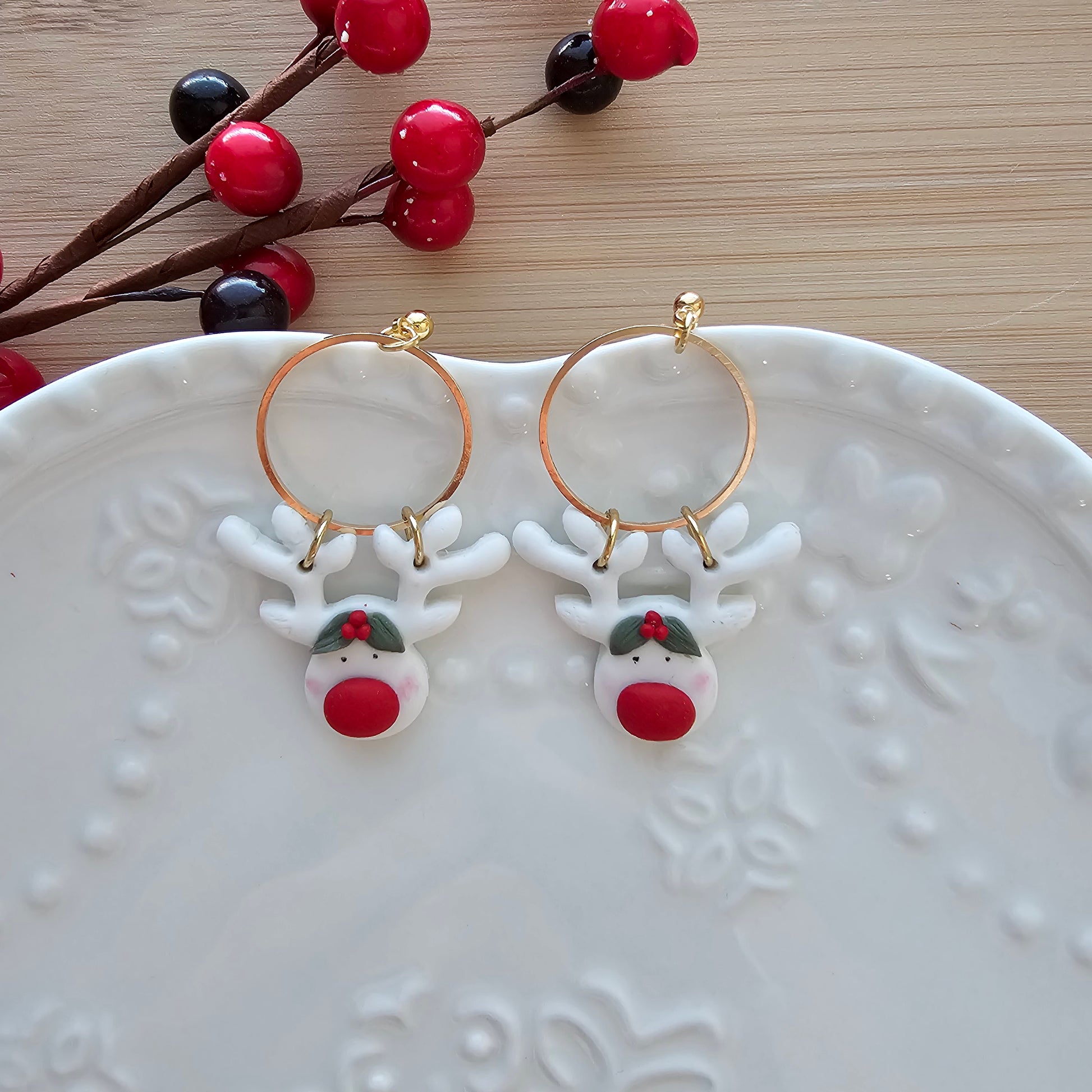 The Jolly Reindeer earrings are handmade from FIMO polymer clay with gold-plated and brass details. With its' adorable little details, these earrings are ideal statement piece for lovers of design and artisanal, holiday-themed jewelry.
